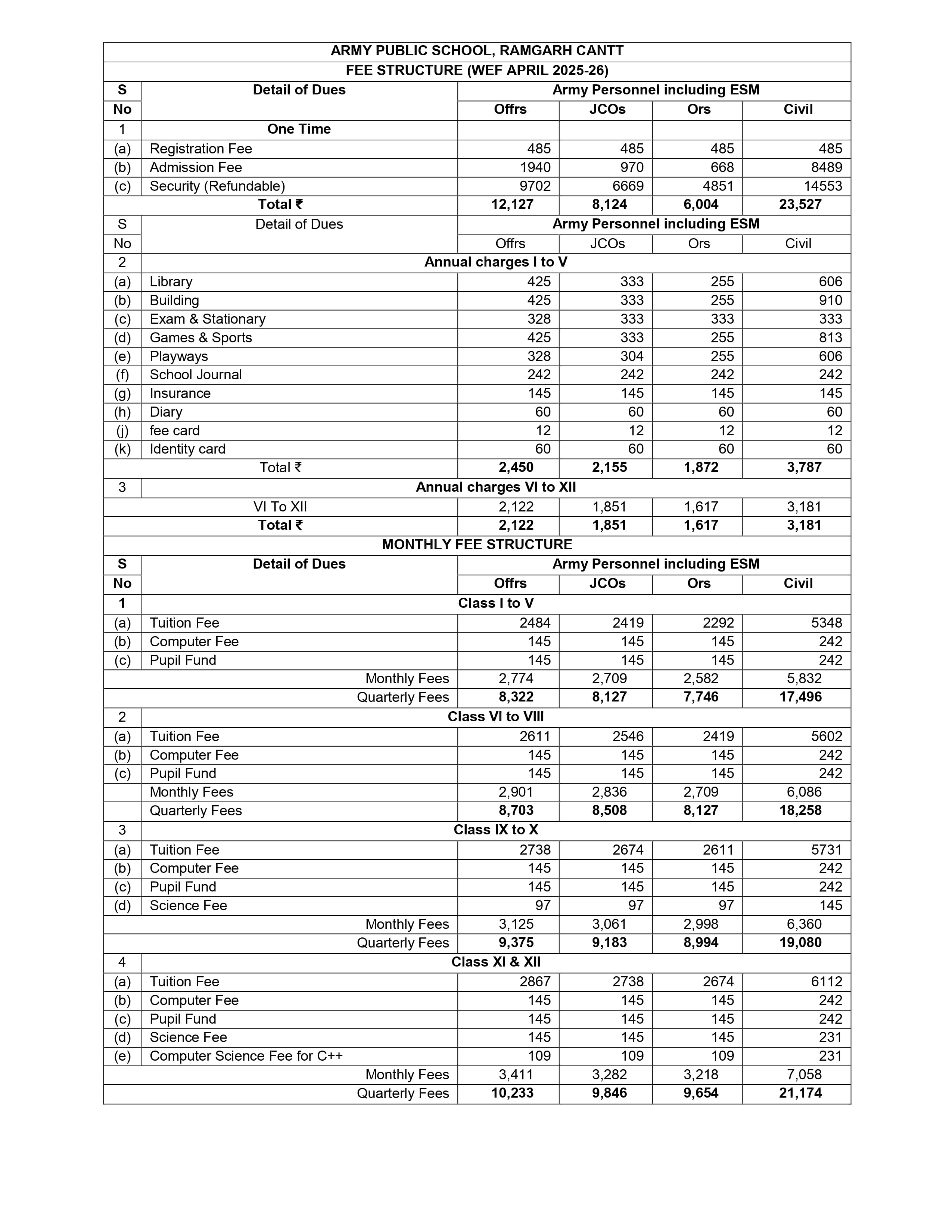 FEE STRUCTURE